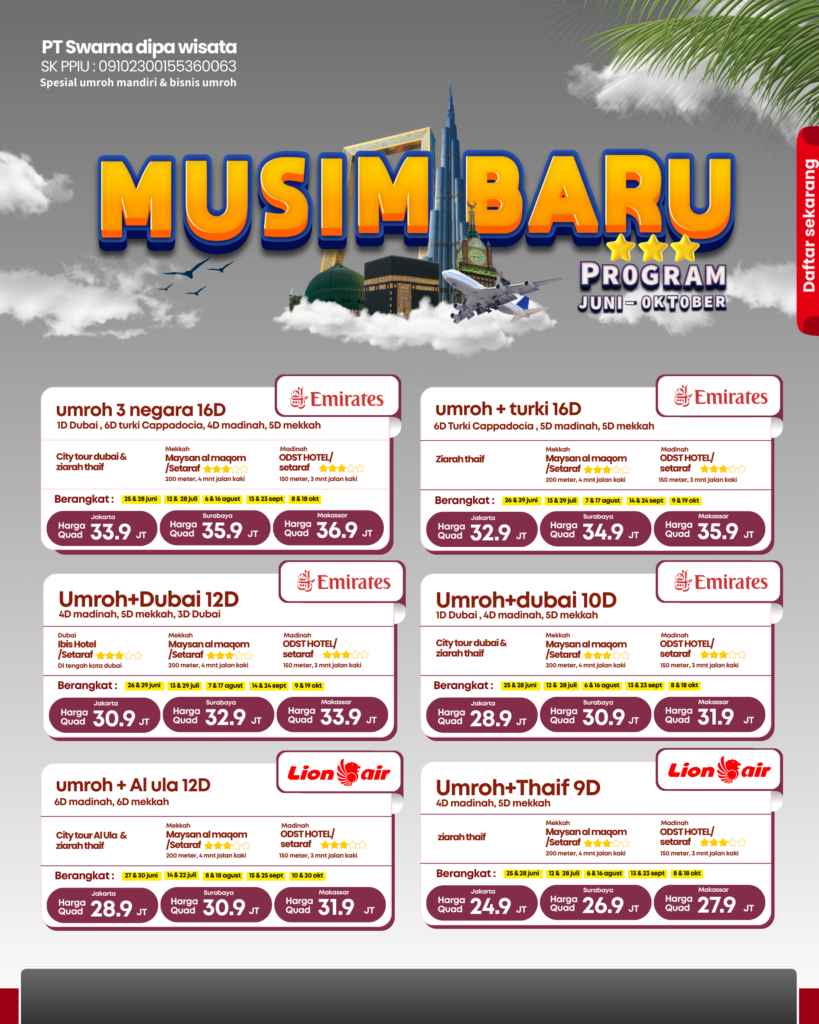 Tenang… tinggal klik tombol di bawah ini ↓ Program ini bantu kamu bisa berangkat Umroh dengan biaya lebih terjangkau, tapi tetap ibadah nyaman.